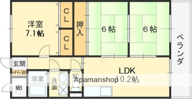 | 専有面積 | 66.3㎡ | 所在階/階数 | 6階/8階建 |