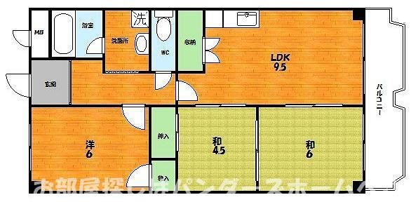 | 間取り | 3LDK(和6 和4.5 洋6 LDK9.5) | 築年月(築年数) | 1989年5月(築36年8ヶ月) |