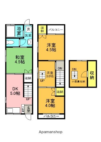 | 間取り | 4DK(和4.5 洋4.5 洋4 洋3 DK6) | 築年月(築年数) | 1995年10月(築30年2ヶ月) |