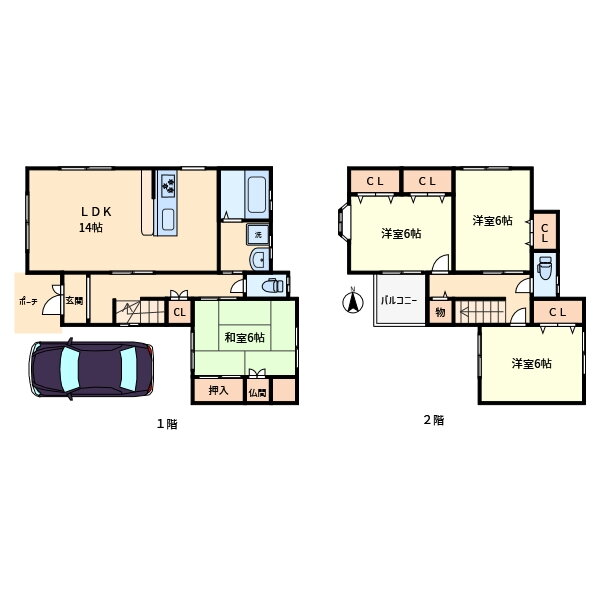 | 間取り | 4LDK(和6 洋6 洋6 洋6 LDK14) | 築年月(築年数) | 2001年12月(築24年1ヶ月) |