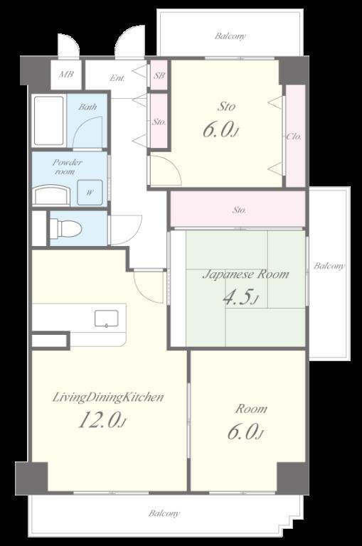 | 間取り | 3LDK(和4.5 洋6 洋6 LDK12) | 築年月(築年数) | 1998年5月(築27年8ヶ月) |