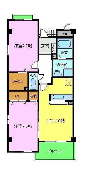 2LDK(洋7.7 洋7.5 LDK10) |