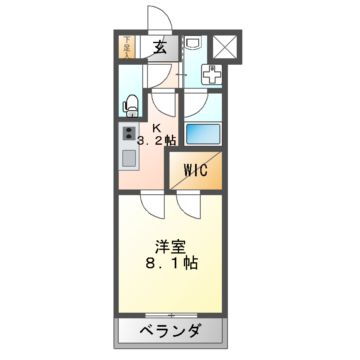 | 間取り | 1K(洋8.1 K3.2) | 築年月(築年数) | 2021年9月(築4年4ヶ月) |