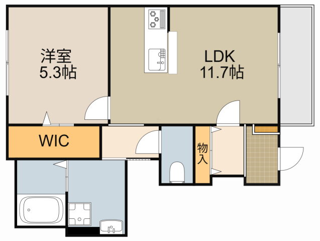 | 間取り | 1LDK(洋5.3 LDK11.7) | 築年月(築年数) | 2025年4月 新築 |