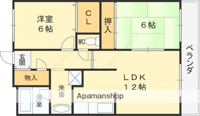 2LDK(和6 洋5 LDK12.1 納戸 6.2) |