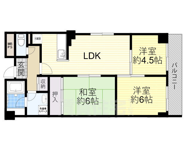| 間取り | 3LDK(和6.00 洋6.00 洋4.50) | 築年月(築年数) | 1991年11月(築34年2ヶ月) |