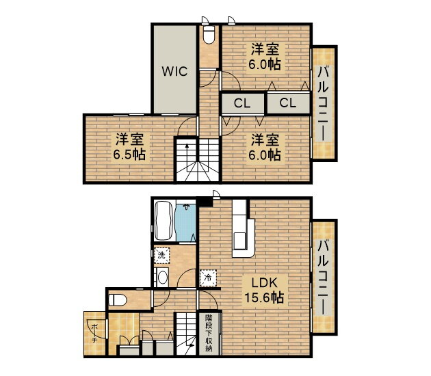 3LDK(洋6.5 洋6 洋6 LDK15.6) |
