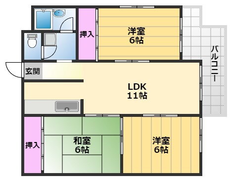 | 間取り | 3LDK(和6.0 和6.0 洋6.0 LDK11.0) | 築年月(築年数) | 1988年4月(築37年9ヶ月) |