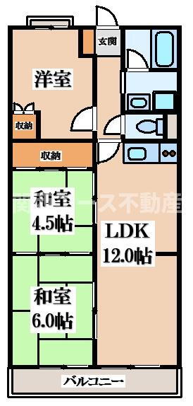 | 間取り | 3LDK(和6.0 和4.5 洋4.5 LDK12.0) | 築年月(築年数) | 1976年9月(築49年4ヶ月) |