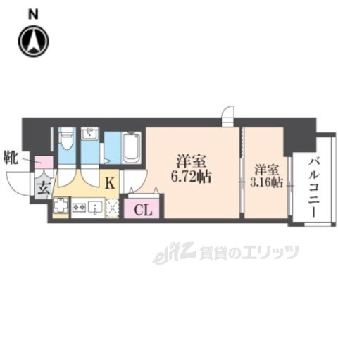 | 間取り | 2K(洋6.7 洋3.1) | 築年月(築年数) | 2024年1月(築1年12ヶ月) |