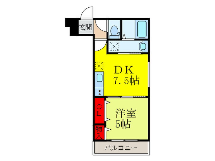 | 間取り | 1DK(洋5 DK7.5) | 築年月(築年数) | 2016年10月(築9年3ヶ月) |