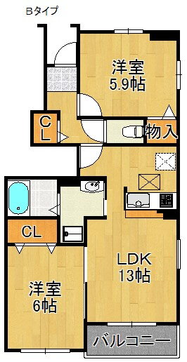 | 間取り | 2LDK(洋6 洋5.9 LDK13) | 築年月(築年数) | 2012年5月(築13年7ヶ月) |