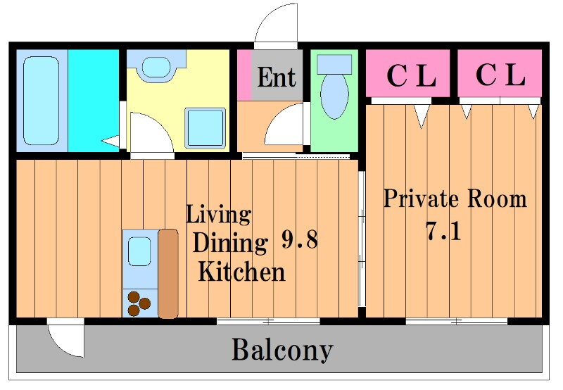 | 間取り | 1LDK(洋7.1 LDK9.8) | 築年月(築年数) | 2017年4月(築8年9ヶ月) |