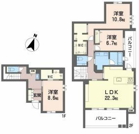 3LDK(洋10.8 洋8.6 洋6.7 LDK22.3) |