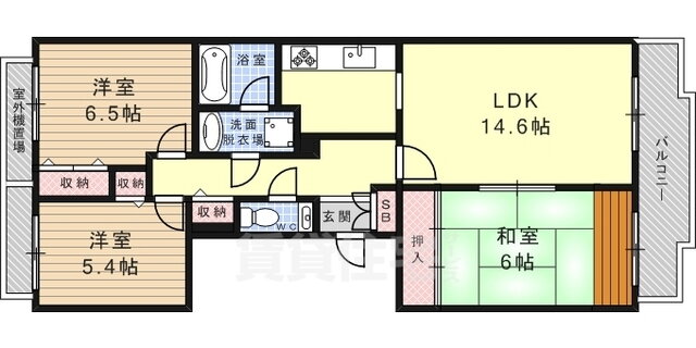 | 間取り | 3LDK(和6 洋6.5 洋5.4 LDK14.6) | 築年月(築年数) | 1991年11月(築34年2ヶ月) |