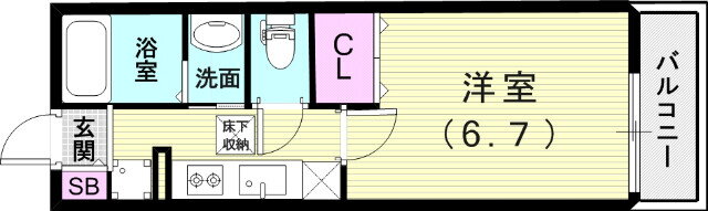 | 間取り | 1K(洋6.7 K2) | 築年月(築年数) | 2003年3月(築22年10ヶ月) |