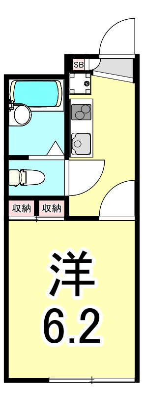 | 間取り | 1K(洋6.2) | 築年月(築年数) | 2006年6月(築19年7ヶ月) |