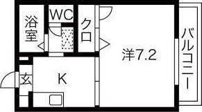 | 間取り | 1K(K7.2) | 築年月(築年数) | 1998年10月(築27年3ヶ月) |