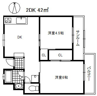 | 間取り | 2DK(洋6 洋4.5) | 築年月(築年数) | 1972年3月(築53年10ヶ月) |