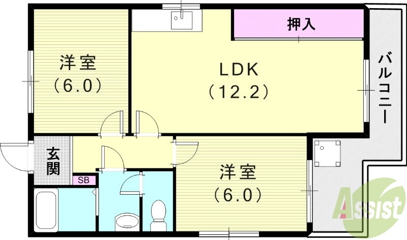 | 間取り | 2LDK(洋6 洋6 LDK12.2) | 築年月(築年数) | 1983年5月(築42年8ヶ月) |
