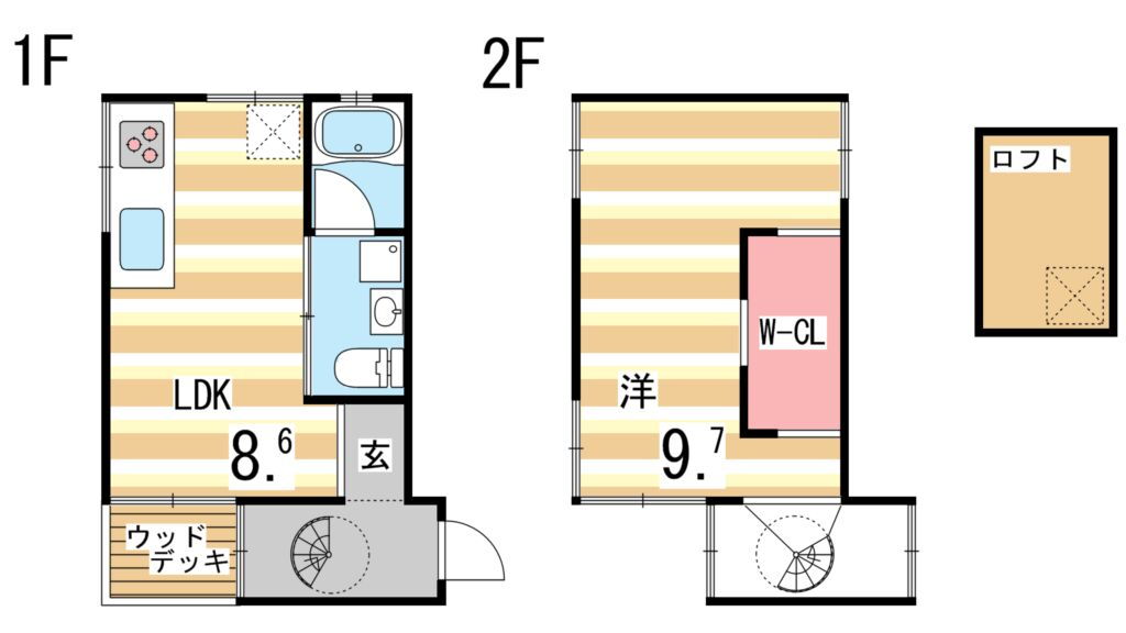 | 設備 | 冷房・暖房・エアコン・ロフト・バルコニー・バス・トイレ別・トイレ・収納スペース・洗濯機置場・洗面所・CATV・BS端子・フローリング・浴室乾燥機・ウォークインクローゼット・温水洗浄便座・システムキッチン・モニタ付インターホン・クローゼット・床下収納・専用庭・CS・衣類乾燥機・IHクッキングヒータ・浴トイレ別・洗面所独立・コンロ2口以上・リノベーション・インターネット対応・室内洗濯機置き場 | ||||