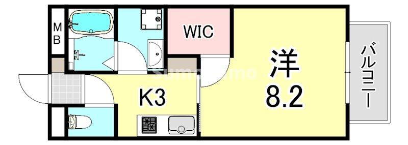 | 間取り | 1K(洋8.2) | 築年月(築年数) | 2003年12月(築22年1ヶ月) |
