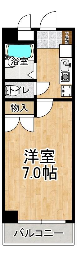 | 間取り | 1K(洋7.0 K2.5) | 築年月(築年数) | 1996年3月(築29年10ヶ月) |