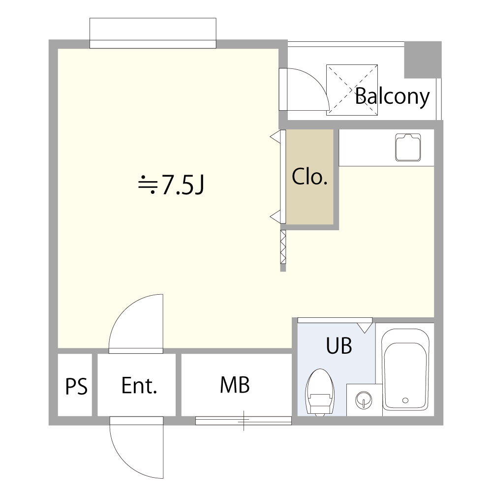 | 間取り | 1K(洋7.5) | 築年月(築年数) | 1989年4月(築36年9ヶ月) |