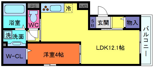 | 間取り | 1LDK(洋4.0 LDK12.1) | 築年月(築年数) | 2014年12月(築11年1ヶ月) |