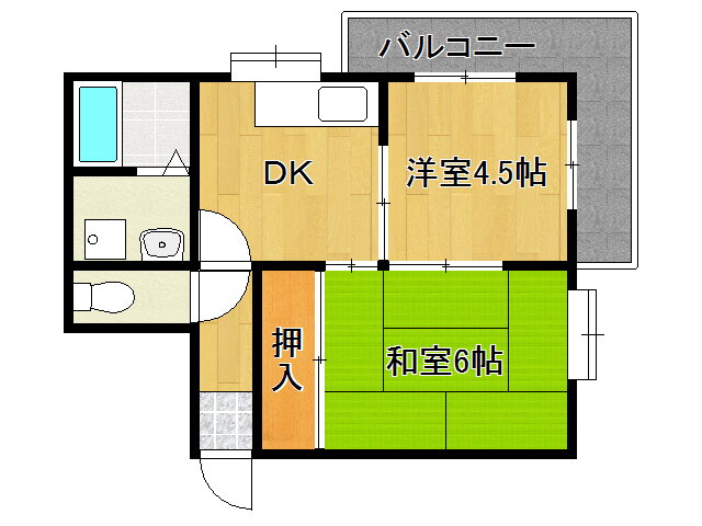 | 間取り | 2DK(和6.0 洋4.5 DK4.5) | 築年月(築年数) | 1988年7月(築37年6ヶ月) |