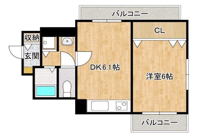 | 間取り | 1DK(洋6.0 DK6.1) | 築年月(築年数) | 1993年5月(築32年8ヶ月) |