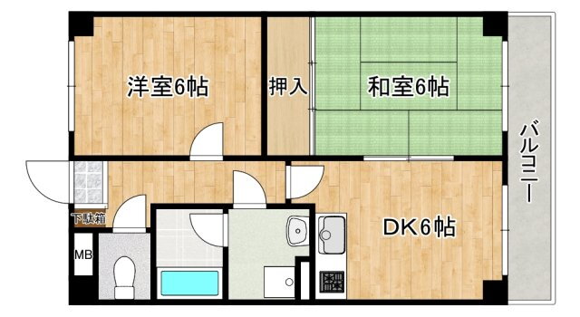 | 間取り | 2DK(和6.0 洋6.0 DK6.0) | 築年月(築年数) | 1996年6月(築29年7ヶ月) |