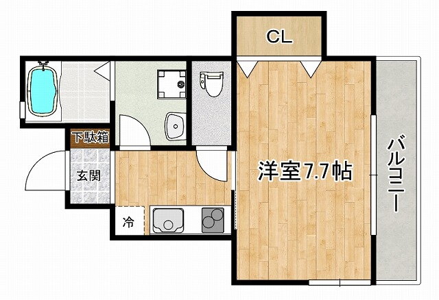 | 間取り | 1K(洋7.7 K2.0) | 築年月(築年数) | 2021年3月(築4年10ヶ月) |