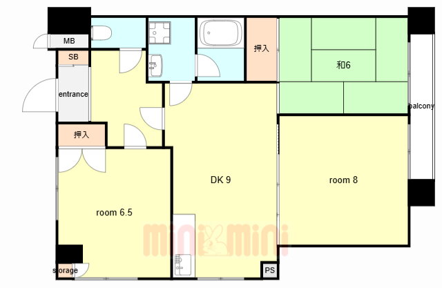 | 間取り | 3DK(和6 洋8 洋6.5 DK9) | 築年月(築年数) | 1985年4月(築40年9ヶ月) |