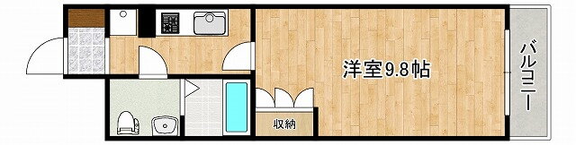 | 間取り | 1K(洋9.8 K2.5) | 築年月(築年数) | 1999年2月(築26年11ヶ月) |