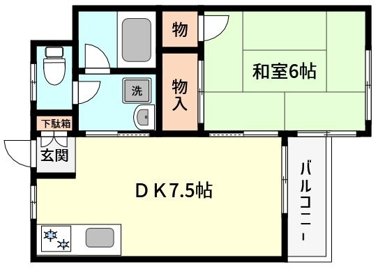 | 間取り | 1DK(和6 DK6) | 築年月(築年数) | 1989年1月(築36年12ヶ月) |
