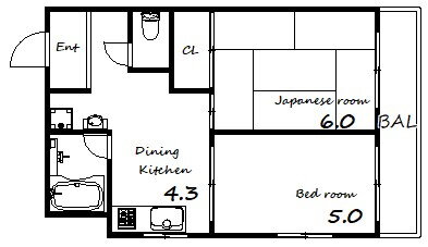 | 間取り | 2DK(和6 洋5 DK4.3) | 築年月(築年数) | 1979年4月(築46年9ヶ月) |