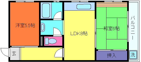 | 間取り | 2DK(和6.0 洋5.5 LDK8.0) | 築年月(築年数) | 1988年10月(築37年3ヶ月) |