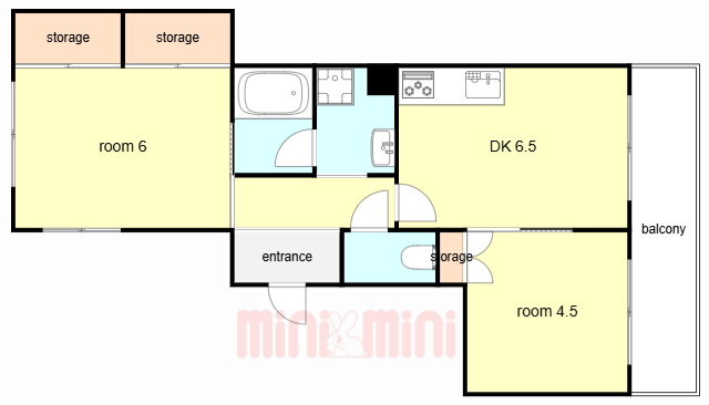 | 間取り | 2DK(和6.5 洋4.5 DK6.5) | 築年月(築年数) | 1985年3月(築40年10ヶ月) |