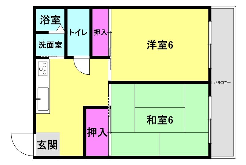 | 間取り | 2DK(和6.0 洋6.0) | 築年月(築年数) | 1973年4月(築52年9ヶ月) |