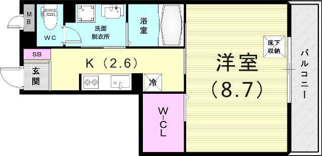 | 間取り | 1K(洋8.7 K2.6) | 築年月(築年数) | 2007年5月(築18年8ヶ月) |