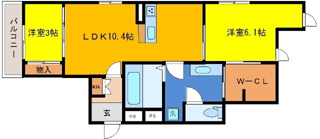 | 間取り | 2LDK(洋6.1 洋3.0 LDK10.4) | 築年月(築年数) | 2015年8月(築10年5ヶ月) |
