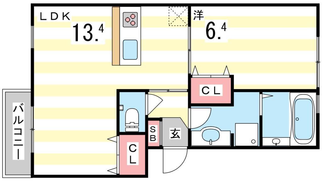 | 間取り | 1LDK(洋6.3 LDK13.4) | 築年月(築年数) | 2012年9月(築13年4ヶ月) |