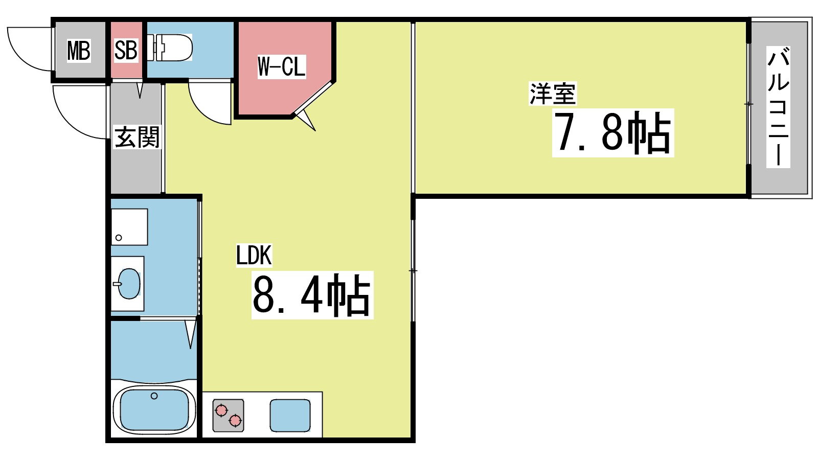 | 間取り | 1LDK(洋7.8 LDK8.4) | 築年月(築年数) | 2007年1月(築18年12ヶ月) |