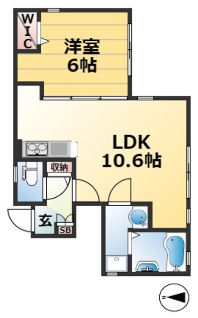 | 間取り | 1LDK(洋6 LDK10.6) | 築年月(築年数) | 2016年10月(築9年3ヶ月) |