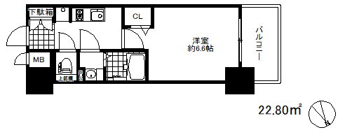 | 間取り | 1K(洋6.6) | 築年月(築年数) | 2019年1月(築6年11ヶ月) |