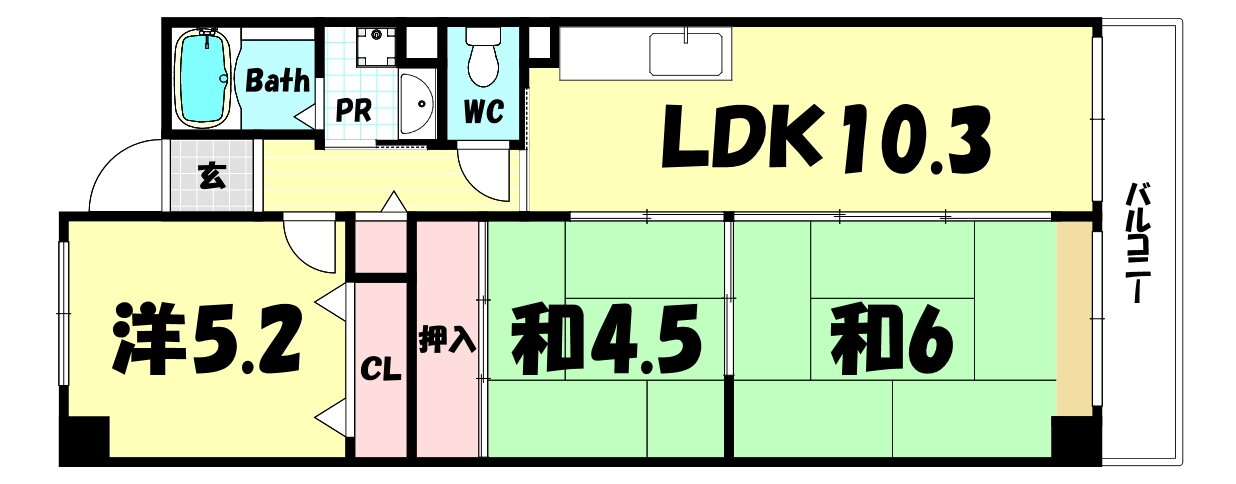| 間取り | 3LDK(和6 和4.5 洋5.2 LDK10.3) | 築年月(築年数) | 1998年7月(築27年6ヶ月) |