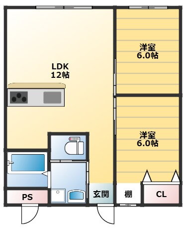 2LDK(洋6.0 洋6.0 LDK12.0) |
