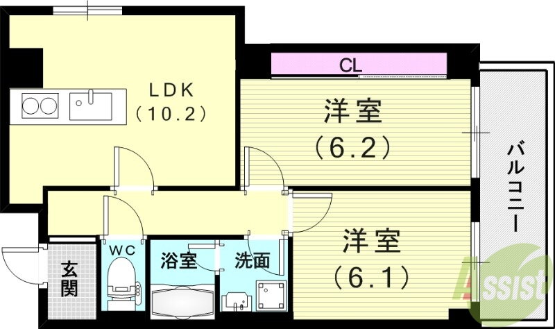 | 間取り | 2LDK(洋6.8 洋6.1 LDK10.2) | 築年月(築年数) | 2025年11月 新築 |