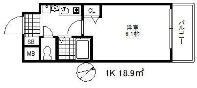 | 間取り | 1K(洋6.1) | 築年月(築年数) | 1999年7月(築26年6ヶ月) |
